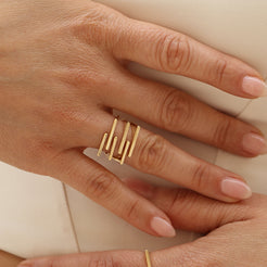 Make an epic statement with the Parallelo Ring, a bold piece of modern fashion. Its extraordinary design features three levels of uninteresting blocks, creating a unique, eye-catching look. Perfect for those who dare to stand out with style.