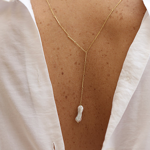 This handmade necklace features a unique chain with delicate gold bars that gracefully embrace every woman's décolleté. Perfect for layering with other short necklaces, it pairs beautifully with shirts and V-neck tops. A true statement piece.