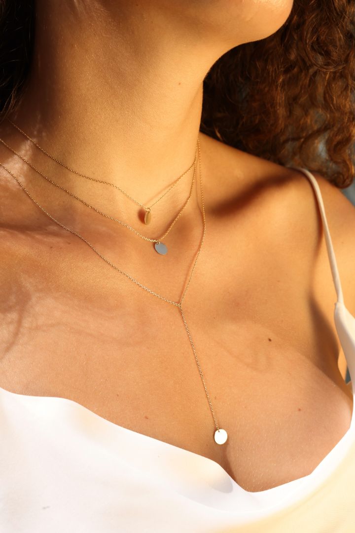 Elevate your neckline with this stunning trio of 18K gold necklaces, thoughtfully designed to be worn stacked or styled solo. Each piece complements the others with graceful harmony—delicate yet radiant, bold yet timeless. Whether layered for impact or worn alone for a touch of refined elegance, these necklaces frame the décolleté beautifully, capturing light with every movement. A versatile essential for effortless sophistication.
